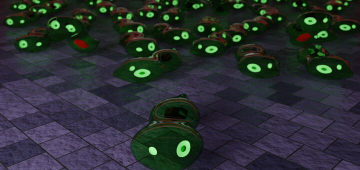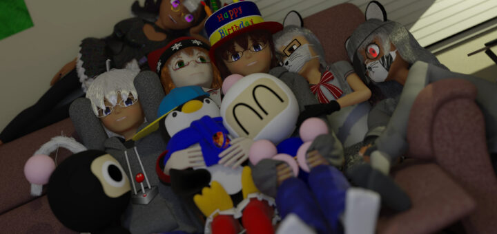 Kinda slacking once again, but I did do a lot of work officially setting up the arcade as an in universe location. Also got a little more experimental with post-processing effects within blender itself.